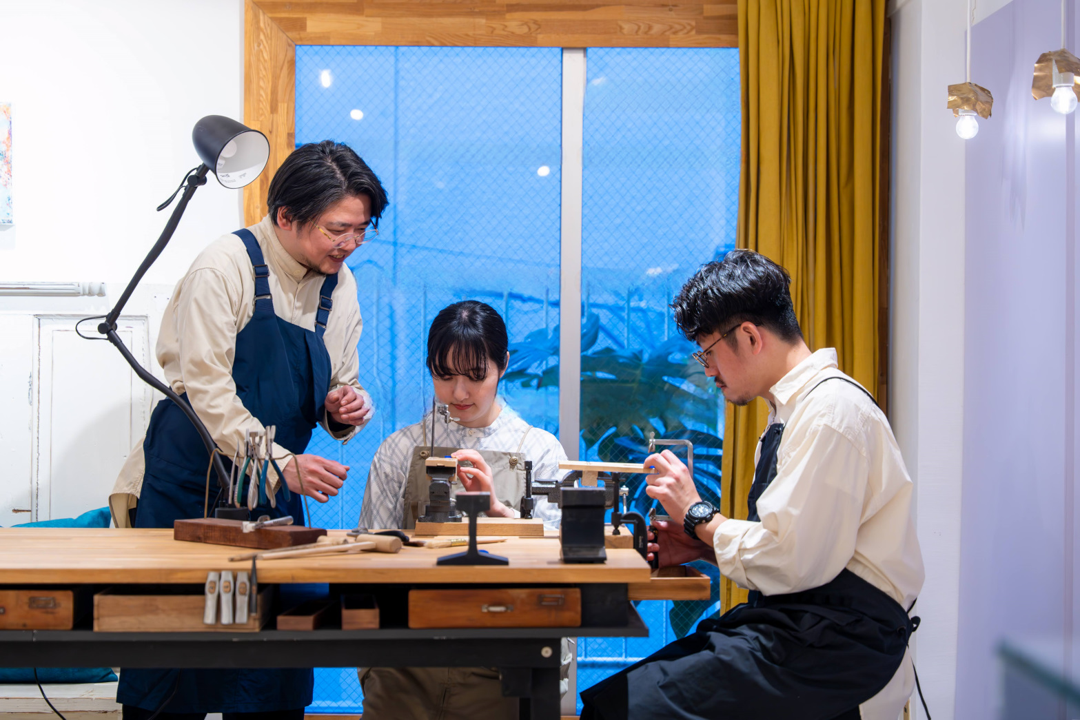 職人の丁寧なサポートがあるので、不器用な方や初めて金属に触れる方でも安心。デザインの自由度も高く、ふたりだけの個性を込めた特別な指輪が作れます。