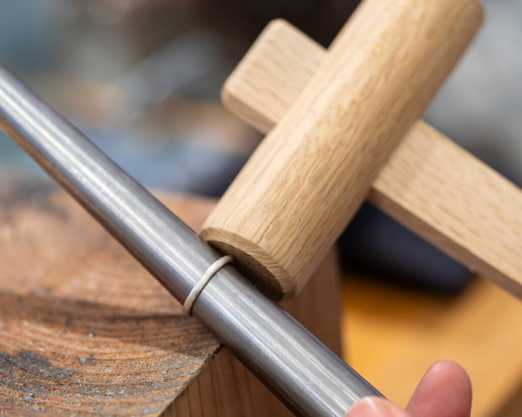 リングのサイズによりますが、20号以下のほとんどの方であれば、細めのリングでも強度的に問題ありません。20号以上の場合は、少し太さを出した方が安心なケースもありますが、指のサイズに合ったバランスで作れば、日常使いで心配になることはほとんどありません。