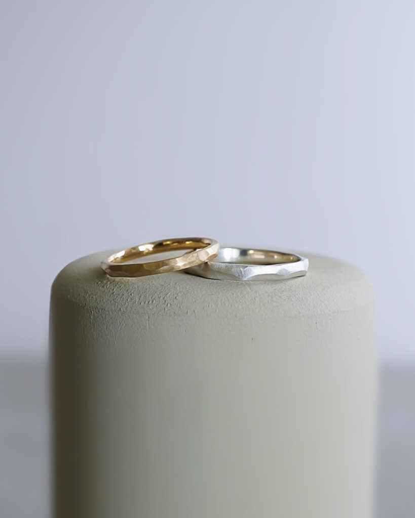 ハンマーで模様を入れたマリッジリング(カップルで体験)